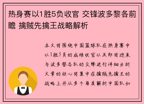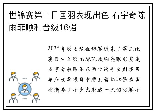 2025年羽毛球世锦赛将成为全球羽毛球界的一场盛事,对于中国羽毛球队来说,这场赛事不仅是一次技术与实力的较量,更是重夺男单和女单桂冠的关键时刻。近年来,韩国和日本羽毛球队的崛起给中国羽毛球队带来了不小的压力,特别是在男单和女单项目上,国羽面临的挑战更加严峻。本文将从四个方面对中国羽毛球队备战2025...